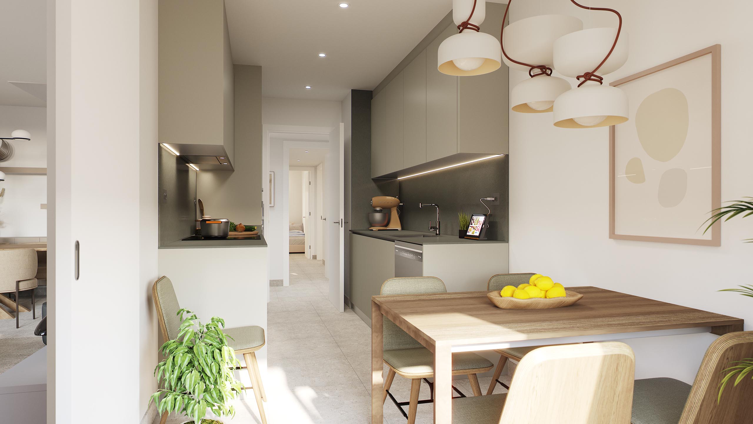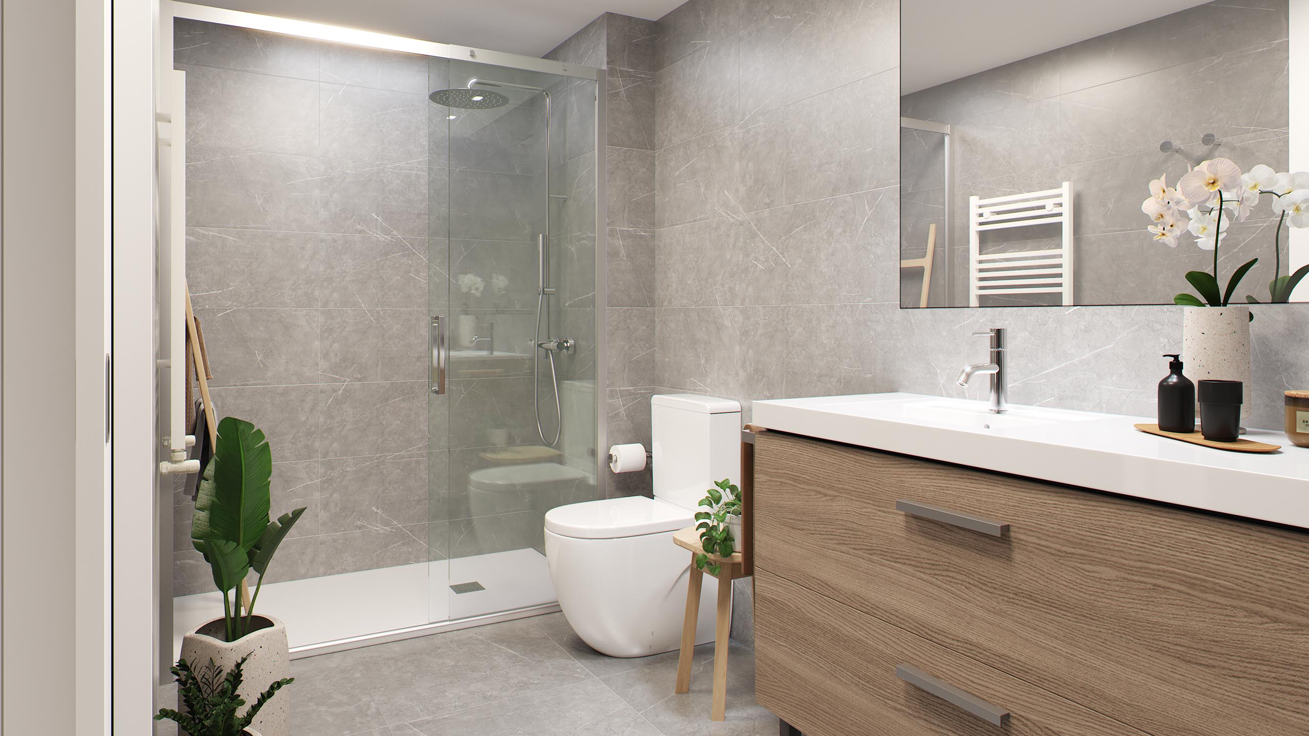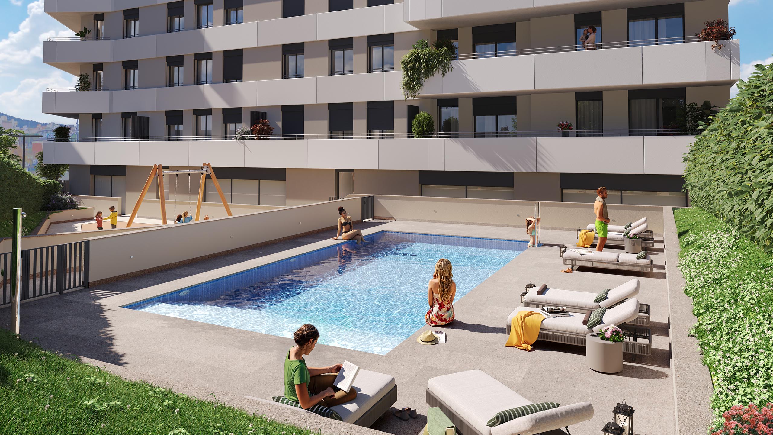 El conjunto está formado por viviendas amplias y luminosas, diseñadas con distribuciones inteligentes y acabados de máxima calidad. La zona común exterior se convierte en un espacio pensado para el bienestar, con piscina y áreas donde relajarse o compartir momentos en familia. Además, las viviendas incorporan aerotermia y suelo radiante, garantizando confort y sostenibilidad durante todo el año.