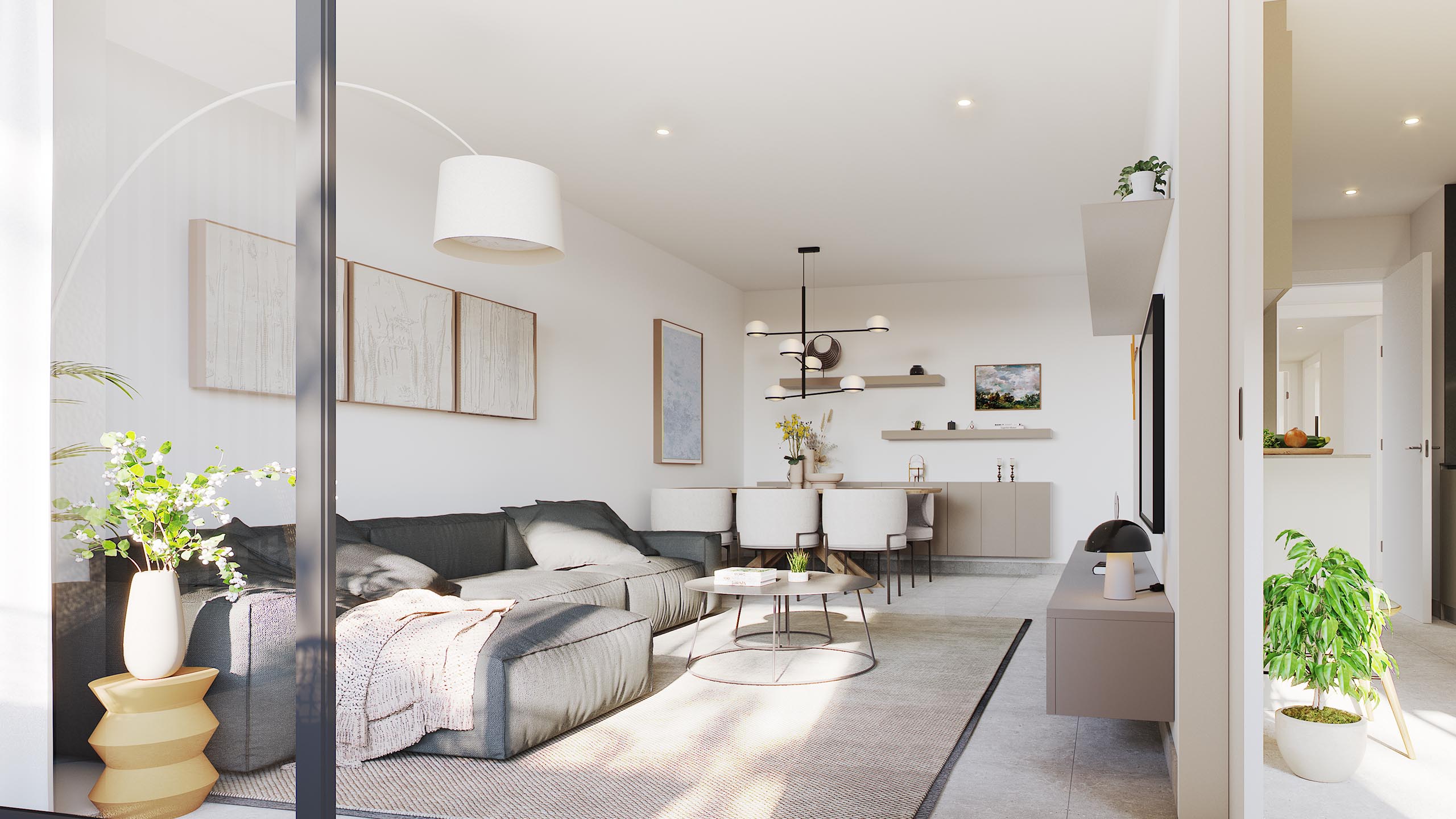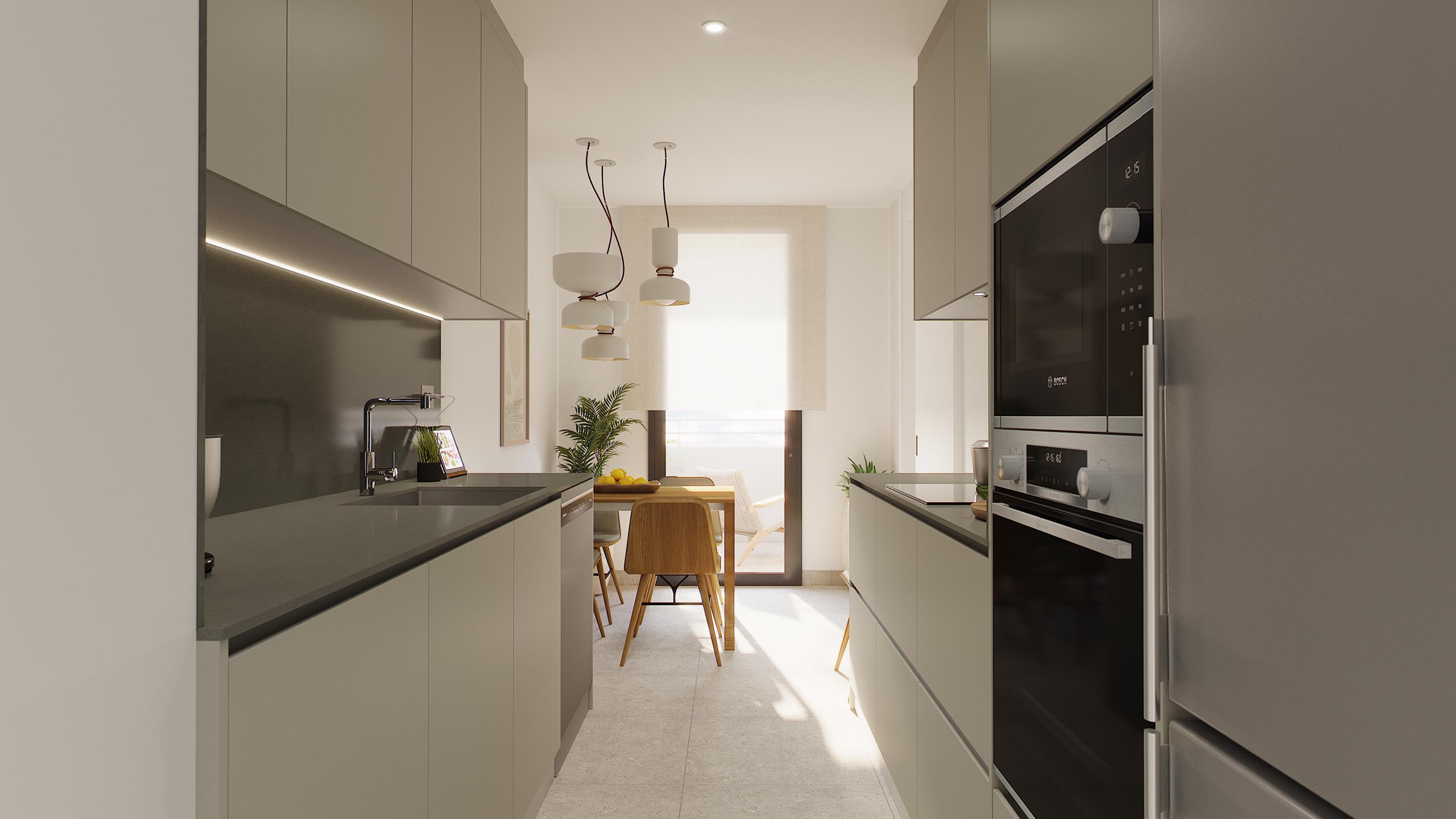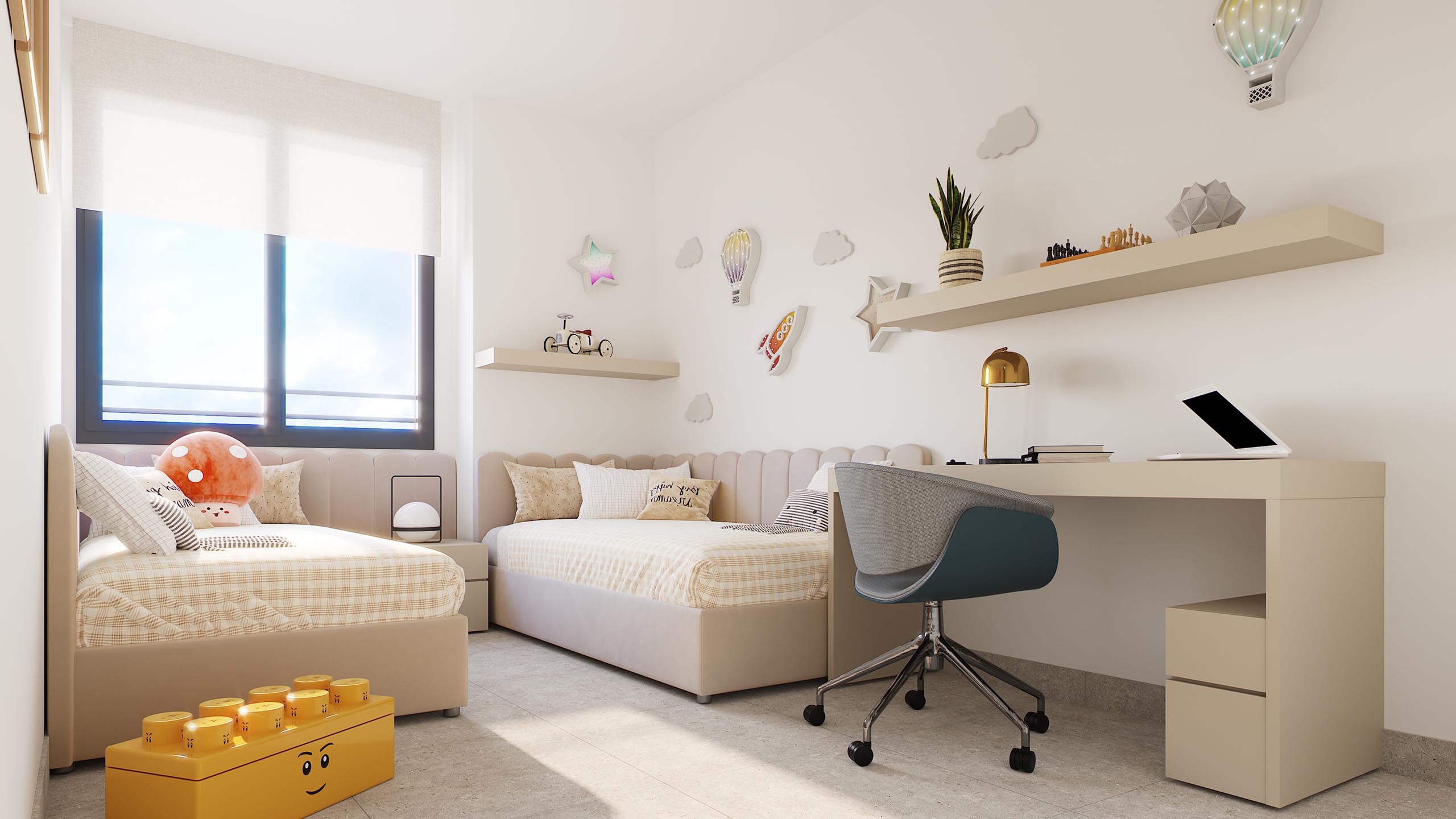El conjunto está formado por viviendas amplias y luminosas, diseñadas con distribuciones inteligentes y acabados de máxima calidad. La zona común exterior se convierte en un espacio pensado para el bienestar, con piscina y áreas donde relajarse o compartir momentos en familia. Además, las viviendas incorporan aerotermia y suelo radiante, garantizando confort y sostenibilidad durante todo el año.